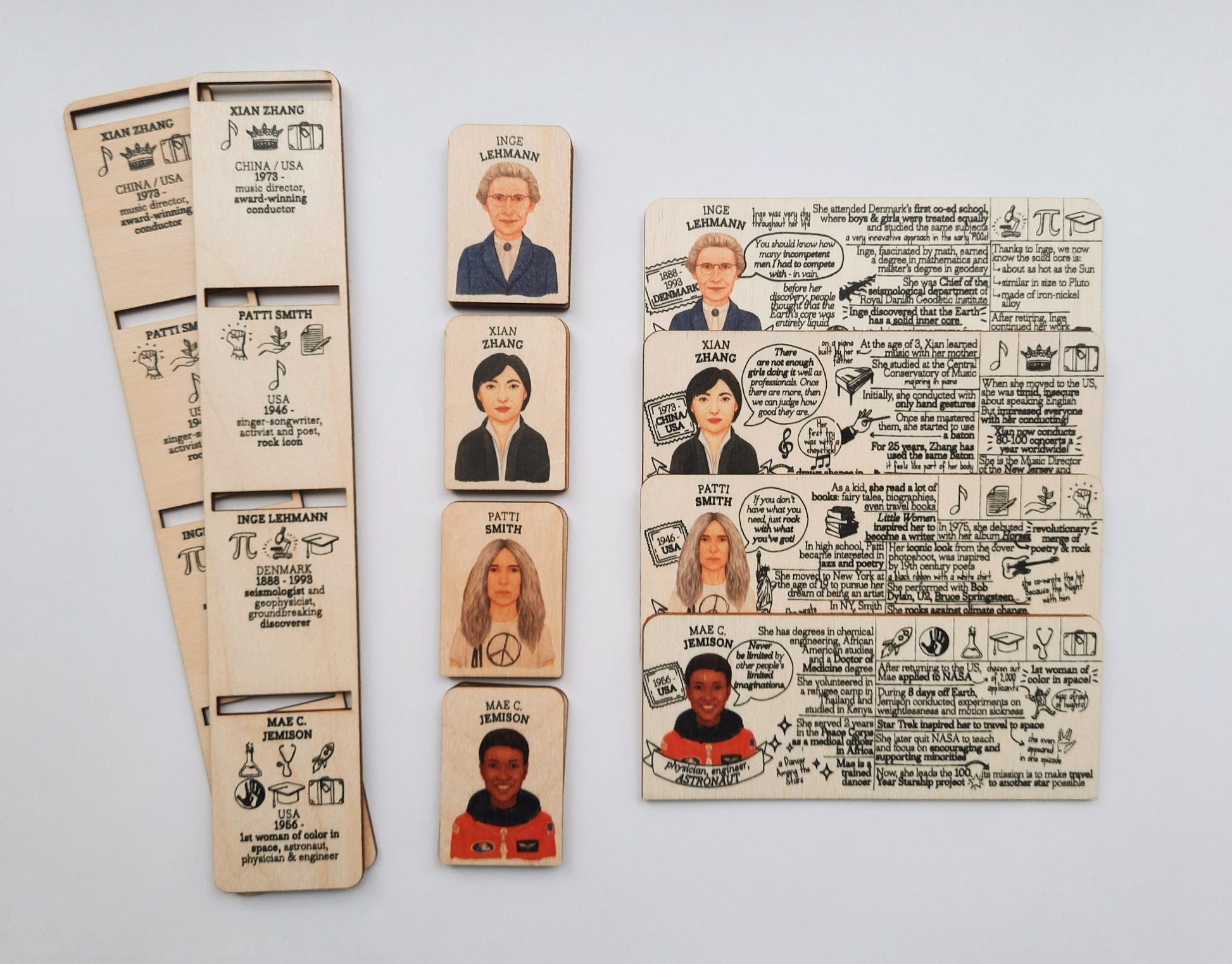 ROCKSTARS set includes all necessary wooden pieces to add 4 empowering women's stories: