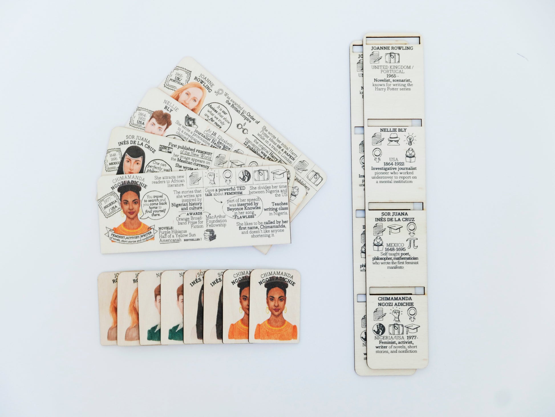 The set WRITERS includes all necessary wooden pieces to add 4 empowering women: