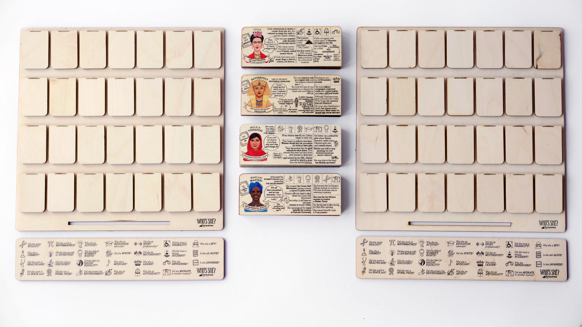 WHO'S SHE? is a two player tabletop game about courageous women who changed the world. From Hatshepsut to Serena Williams. Discover their incredible adventures!